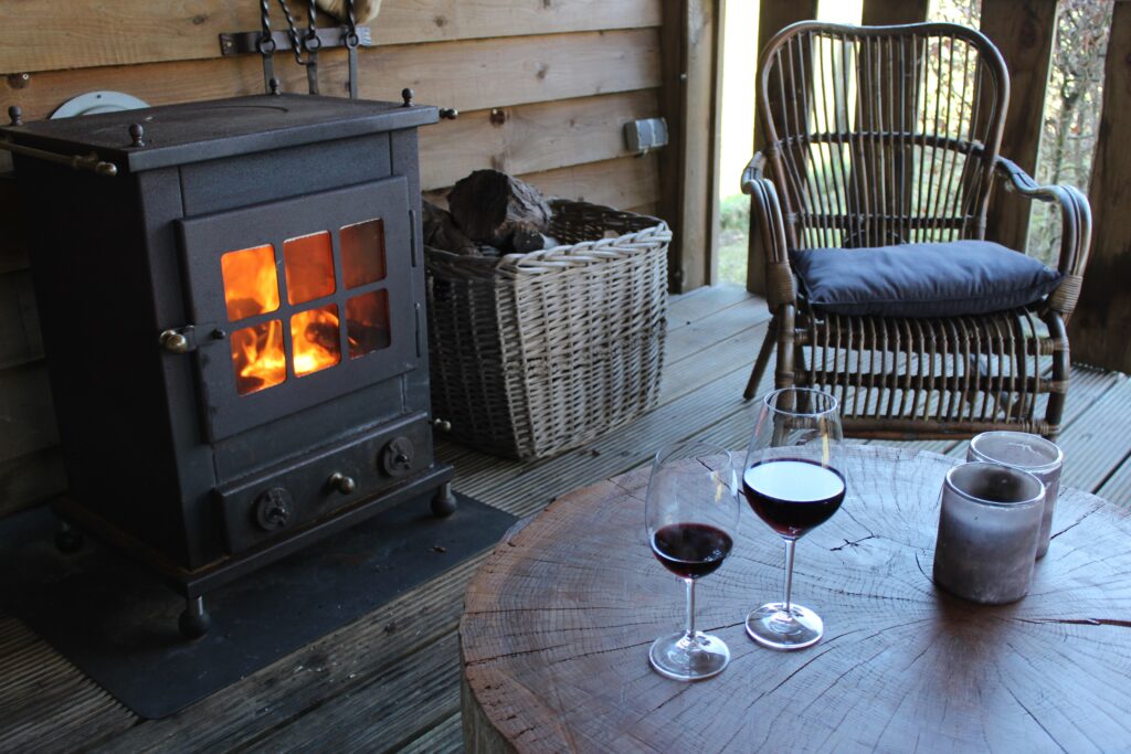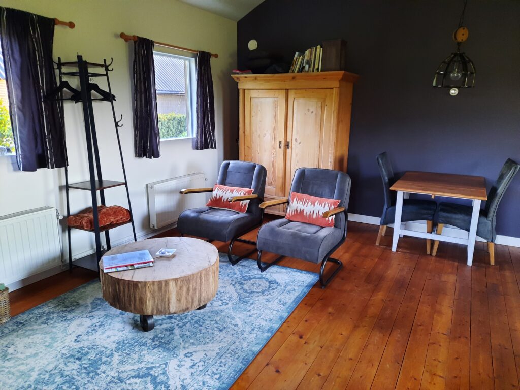 Het Gastenverblijf is gehuisvest in een groot houten tuinhuis met een eigen ingang en douche en toilet. Op de gezellige veranda, kunt u rond de houtkachel genieten van het vrije uitzicht op een weiland en misschien van de koeien die in de wei lopen.